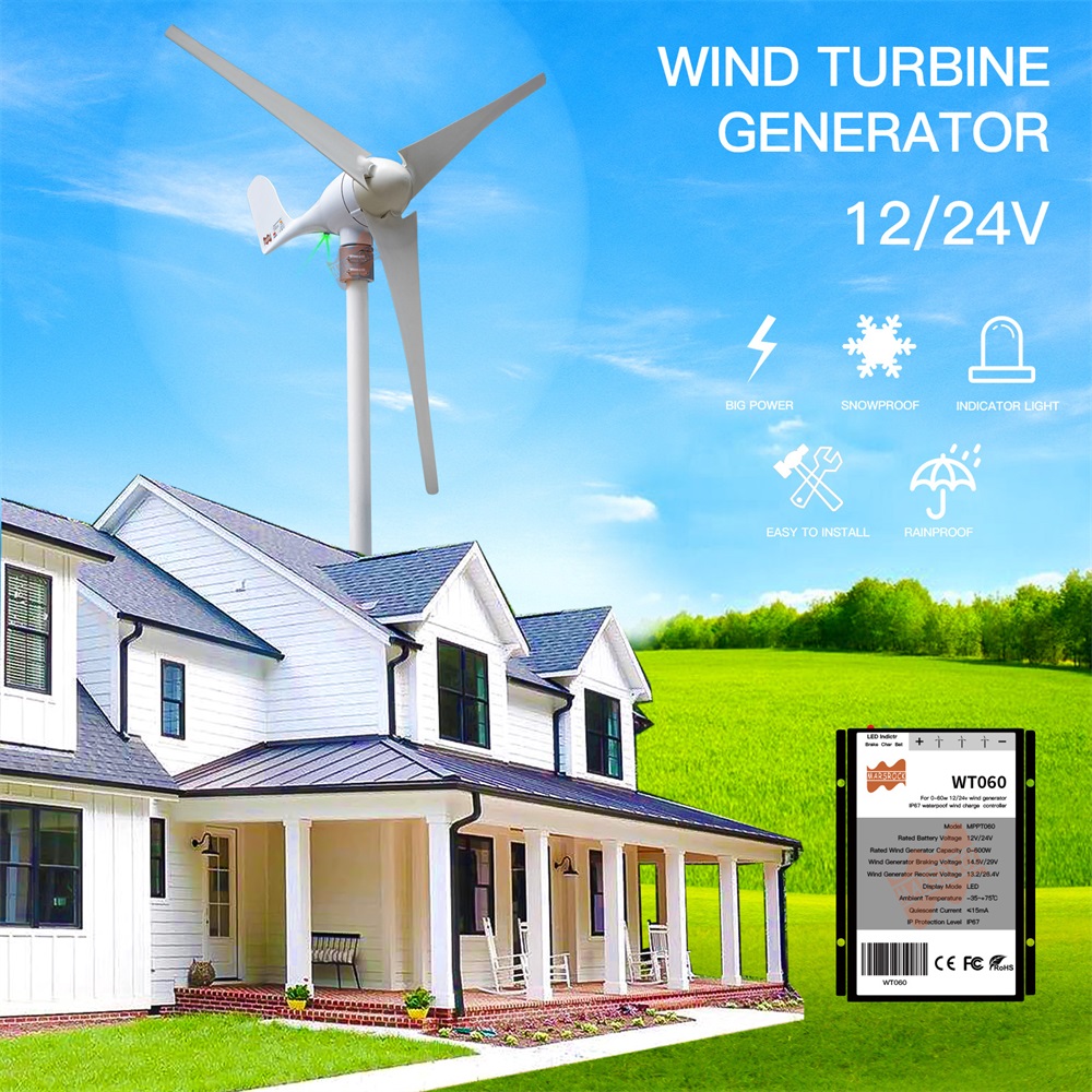 • Mars Rock Mars Rock 600W 12V 24V 3 Blades Small Home Wind Turbine Generator MPPT Controller LED Charging Indicator Wind Power Windmill